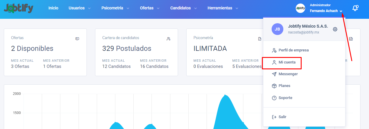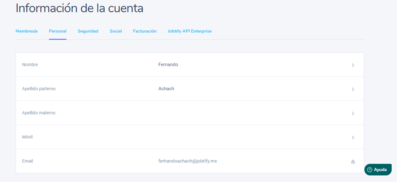 Esta sección permite cambiar los datos personales del reclutador tanto administrador como colaborador.